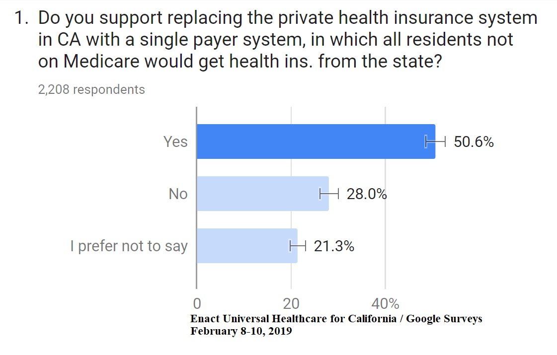 In a Sept. 2019 EUHC4CA/Google Surveys poll, 53% of Americans favored dumping private health insurers and moving the entire country to Single Payer. SUNNYVALE, Calif. – Oct. 7, 2019 — A majority of Americans put private health insurance companies… Read More